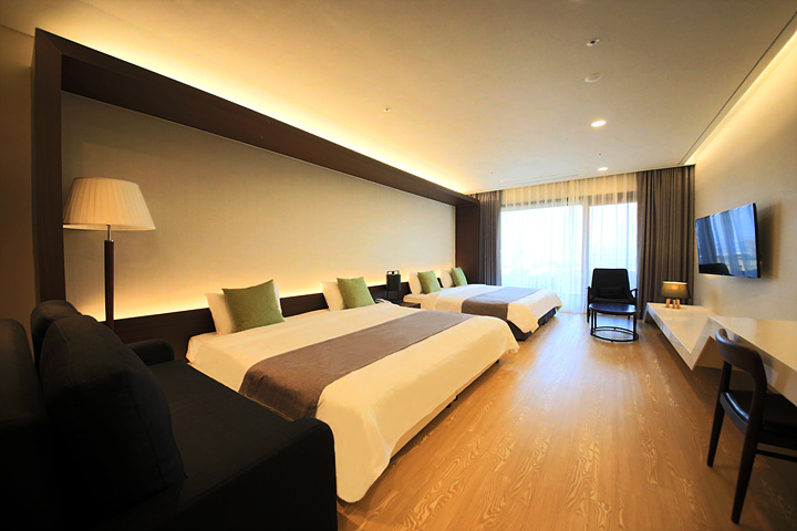 - 이 객실의 더블 베드는 싱글 베드 두 개를 붙여 놓은 객실입니다.